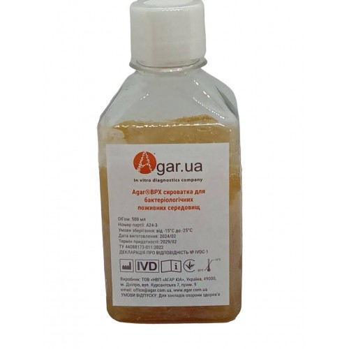 Agar®ВРХ сироватка для бактеріологічних поживних середовищ - фільтрується потрійною фільтрацією через серію стерильних мембран (фільтрів) із розміром пір до 0,1 мікрон. Agar®ВРХ сироватка для бактеріологічних поживних середовищ - це компонент крові, який може бути отриманий після згортання і видалення клітинних компонентів. Крім сироваткових білків вона містить фактори росту, амінокислоти і гормони. Такий комплексний склад робить сироватку однією з найважливіших добавок, що підтримують ріст і розмноження клітин у культурі клітин in vitro.